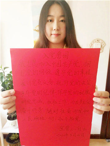“重温誓词,铭记担当”—— 党支部全体学生党员最后手写入党誓词,重温入党时刻,追忆入党初心,牢记作为学生党员要时刻起到先锋模范带头作用。