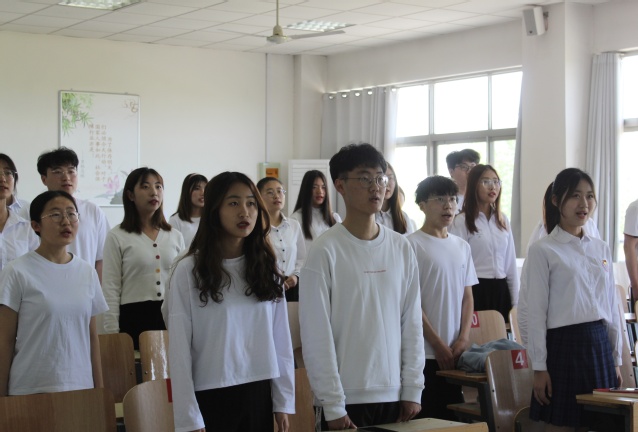 活动伊始,由“青年讲党史”宣讲人王庆华领学,和同学们一起学习了社会主义革命和建设时期的历史。在社会主义革命和建设时期,中国共产党团结带领全国各族人民完成社会主义革命,确立社会主义基本制度,推进社会主义建设,完成了中华民族有史以来最为广泛而深刻的社会变革,为当代中国一切发展进步奠定了根本政治前提和制度基础,为开创中国特色社会主义提供了宝贵经验、理论准备和物质基础。接下来是激动人心的合诵环节。“雄鸡一样形状的土地,终于发出了黎明的报晓,一轮鲜红的太阳,从未有过今天的辉煌。”同学们满怀激情、声情并茂地合诵了《红船,从南湖起航》。同学们用真挚的情感诵读经典作品,回顾党的光辉历程,抒发和表达自己牢记党恩、永铸党魂、一往无前跟党走的忠诚与担当。