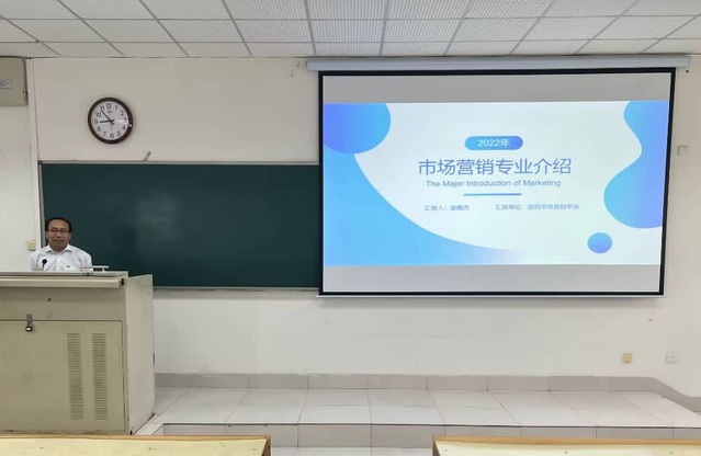 为帮助2022级市场营销本科班新生更好了解本专业,以更加饱满的热情迎接大学生活,9月30日,*漫画18 在教学楼B402举行了新生专业介绍活动。活动由医药市场营销学系姜雁杰老师主讲,全体新生和部分老师参加活动。