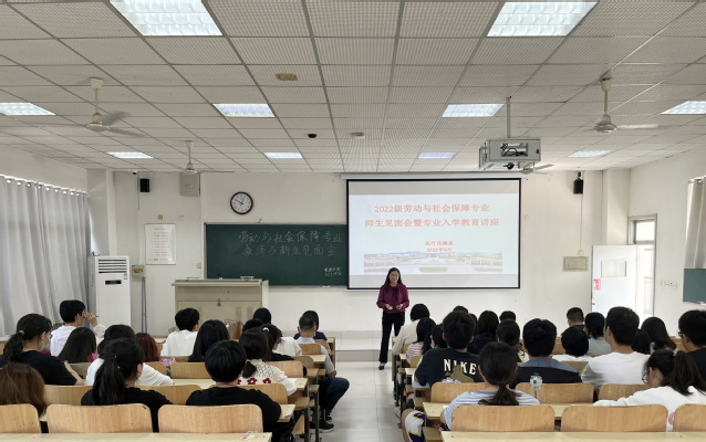 为帮助新生明确专业认知,合理规划大学生活,9月30日,*漫画18 医疗保障系于B404教室举办了2022级劳动与社会保障专业师生见面会暨专业入学教育讲座。活动由医疗保障系主任胡善菊主持,医疗保障系全体教师和劳动与社会保障专业2022级全体同学参与。