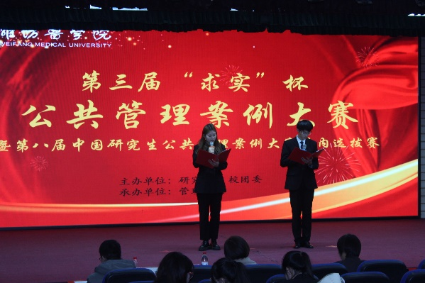 11月25日下午,由学校研究生处、校团委主办,*漫画18 承办的潍坊医学院第三届“求实杯”公共管理案例大赛暨第八届中国研究生公共管理案例大赛校内选拔赛在图书馆演播厅举行。*漫画18 党委副书记孙勇、*漫画18 和马克思主义学院评委老师以及学生代表参加活动。
