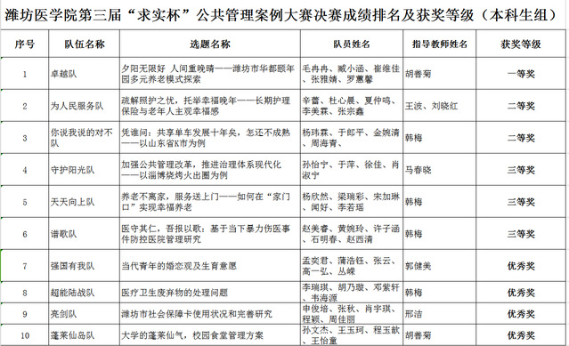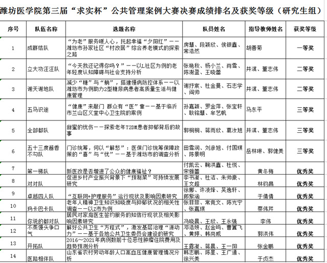11月25日,由学校研究生处、校团委主办,*漫画18 承办的潍坊医学院第三届“求实杯”公共管理案例大赛暨第八届中国研究生公共管理案例大赛校内选拔赛圆满收官。该项赛事自2023年9月启动以来,得到了全校各专业本科生、研究生的积极响应。