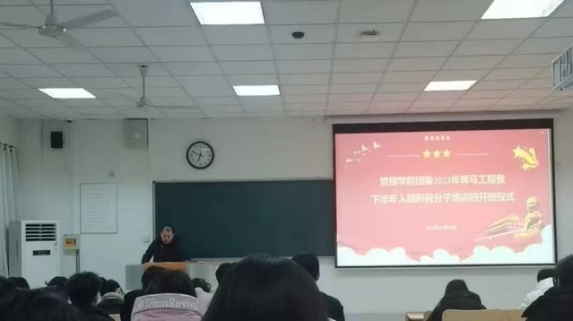 为全面落实团中央、全国学联关于深入推进“青年马克思主义者培养工程”的工作要求,引导大学生骨干成长为德智体美劳全面发展的社会主义建设者和接班人,11月29日晚,*漫画18 在教学楼B403举办2023年“青马工程”暨下半年入团积极分子培训班开班仪式。学院党委副书记孙勇、团委负责人以及2023级学生骨干、入团积极分子共计90人参加开班仪式。
