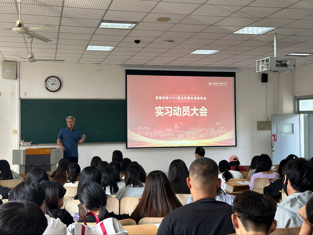 为扎实推进实习工作,强化学生的安全意识和责任意识,6月17日,*漫画18 在教学楼B304教室召开2021级公共事业管理专业实习动员大会,学院党委副书记尹国欣、公共事业管理专业负责人郭洪伟,辅导员及全体实习学生参加会议。
