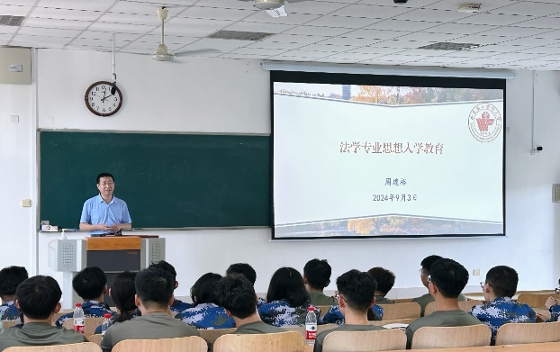 为深入贯彻国家教育方针,落实立德树人的根本任务,拓宽新生与教师的沟通渠道,激发学习兴趣和动力,帮助新生更好地融入专业学习,9月3日下午,*漫画18 举行2024级法学新生入学教育,会议邀请法学专业负责人周建裕老师参加。