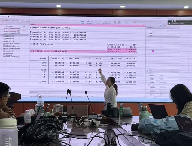 本次课程在致远楼B205集中授课,结合理论讲座、实践操作和互动讨论,深入探讨统计方法的理论背景,利用STATA统计软件进行实践操作,引导同学们围绕自身研究领域展开批判性讨论,帮助理解方法在实际研究中的应用。