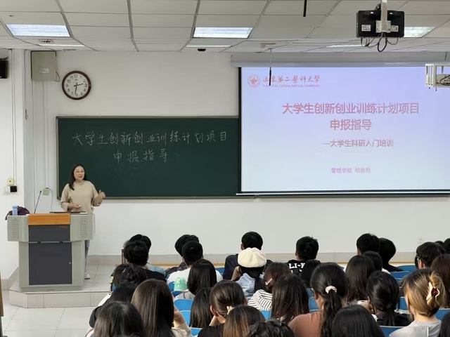 在申报过程中,学院充分发挥朋辈引领的积极作用,邀请之前成功立项省级项目的负责人分享经验。同学们从自身经历出发,分享了选题策略、调研方法、联系导师的技巧以及团队分工协作的要点等细节,让在场的学生们深受启发。