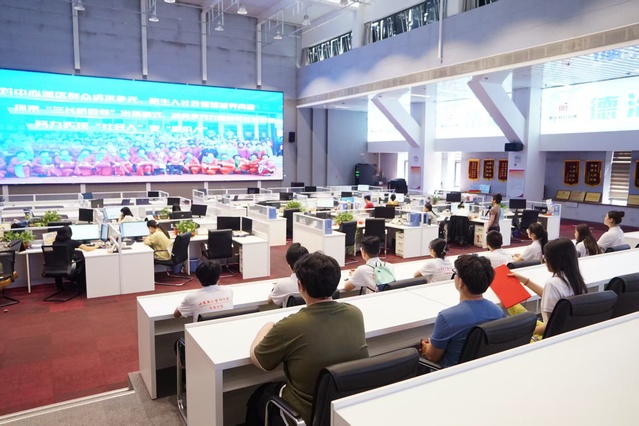 走出去,沉浸式体验基层治理。在奎文区社会治理服务中心,学生们跟随负责人实地考察“窗口直办、部门联办、领导领办和跟踪督办”四办工作机制运行现场。通过讲解员专业解说和窗口岗位跟学,学生们深入理解了“一站式集成,全链条化解”基层治理体制的创新实践。特别是“党员引领+三长协办”的矛盾化解模式,让学生直观感受到党建引领基层治理的生动案例。