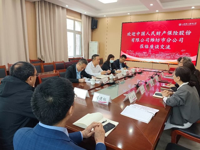 为深化校企协同育人,推动产教融合走深走实,2026年4月28日上午,中国人民财产保险股份有限公司潍坊市分公司人力资源部(党委组织部)苏恩峰经理带队来访*漫画18 ,围绕人才培养、实习就业、专业建设、学科发展等事宜开展合作洽谈。*漫画18 党总支书记张春燕、院长尹文强、副书记尹国欣、副院长于贞杰及各专业负责人出席座谈会。